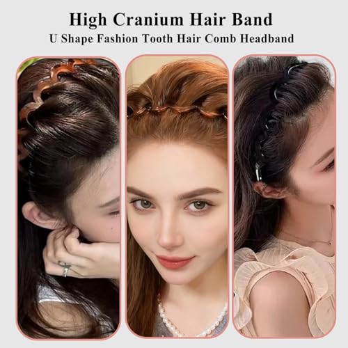 6Pcs U Shape Fashion Tooth Hair Comb Headband,High Cranium Headbands for Women's Hair, Reversible Korean Headbands with Teeth ? (Mix 6Pcs, M)