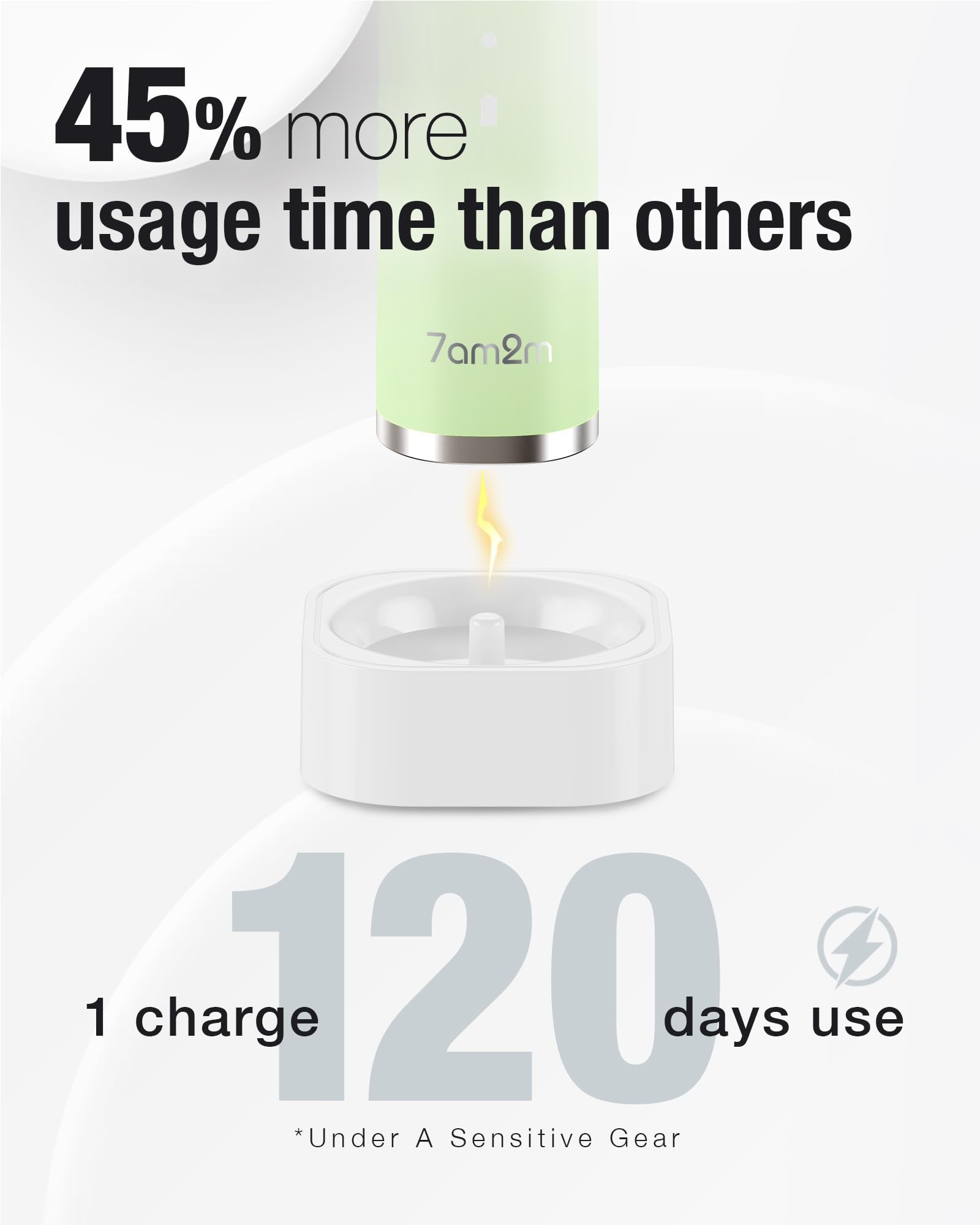 7AM2M Sonic Electric Toothbrush with 6 Brush Heads for Adults&Kids, One Charge for 120 Days, Wireless Fast Charge, 5 Modes, 40000VPM Powered Toothbrush, 2 Minutes Built in Smart Timer - Light Green