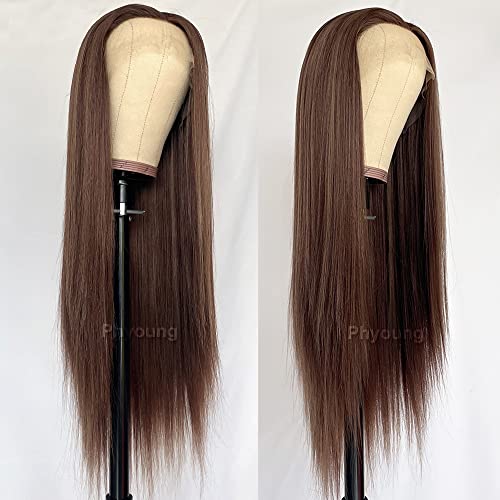Brown Color Lace Front Wigs Long Straight Hair Synthetic Lace Front Wigs for Fashion Women Heat Resistant Hair