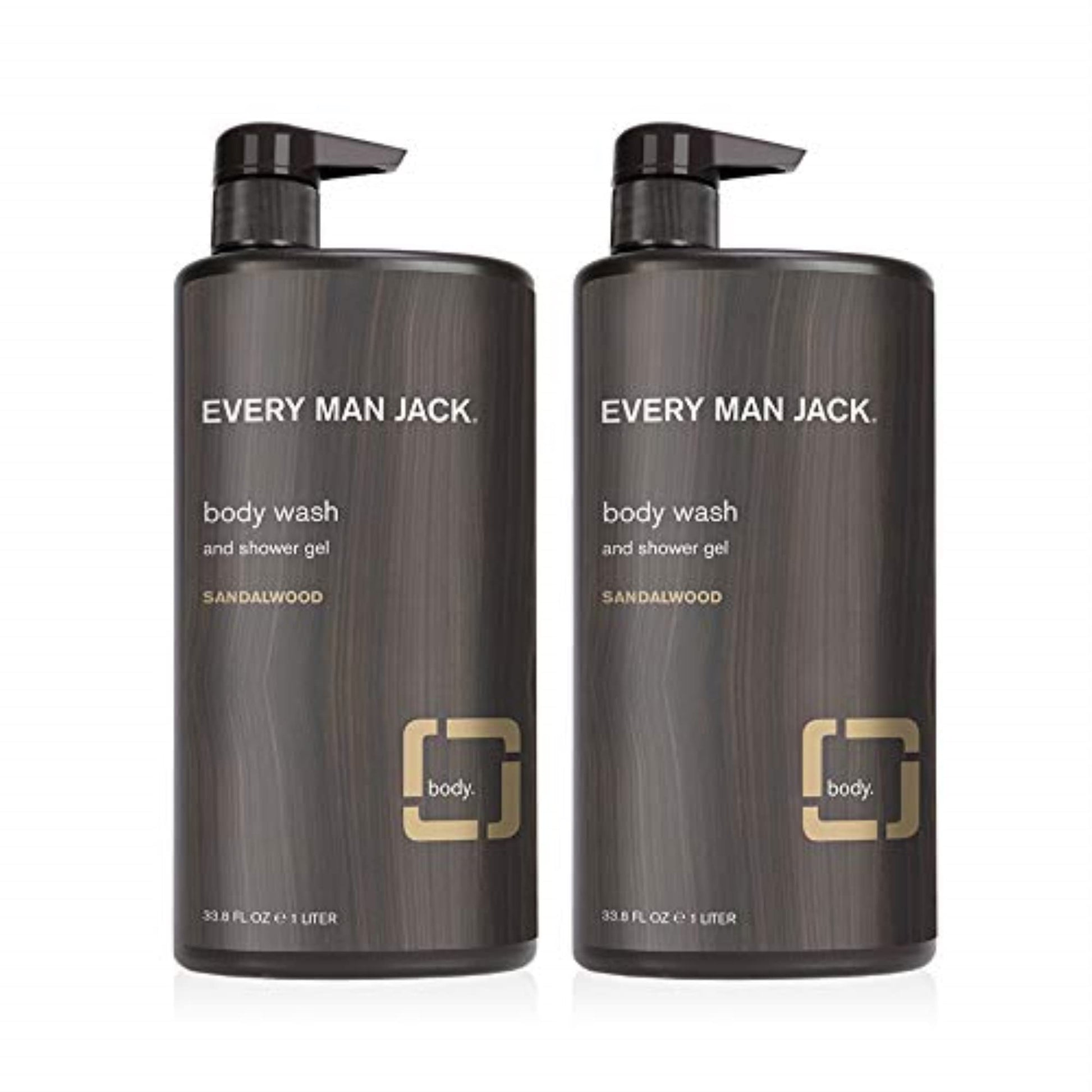 Every Man Jack Mens Sandalwood Body Wash for All Skin Types - Cleanse, Nourish, and Hydrate Your Skin with Naturally Derived Coconut and Glycerin - 2 Bottle