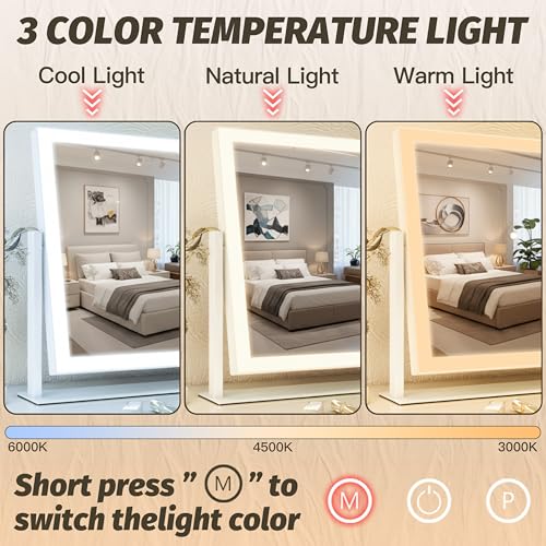 - ?? ¡¼3 Lighting Modes & Stepless Dimming¡½ This LED vanity mirror features 3 color temperatures (warm, natural, cool) and adjustable brightness. Easily simulate different lighting environments for flawless makeup at any time of day.