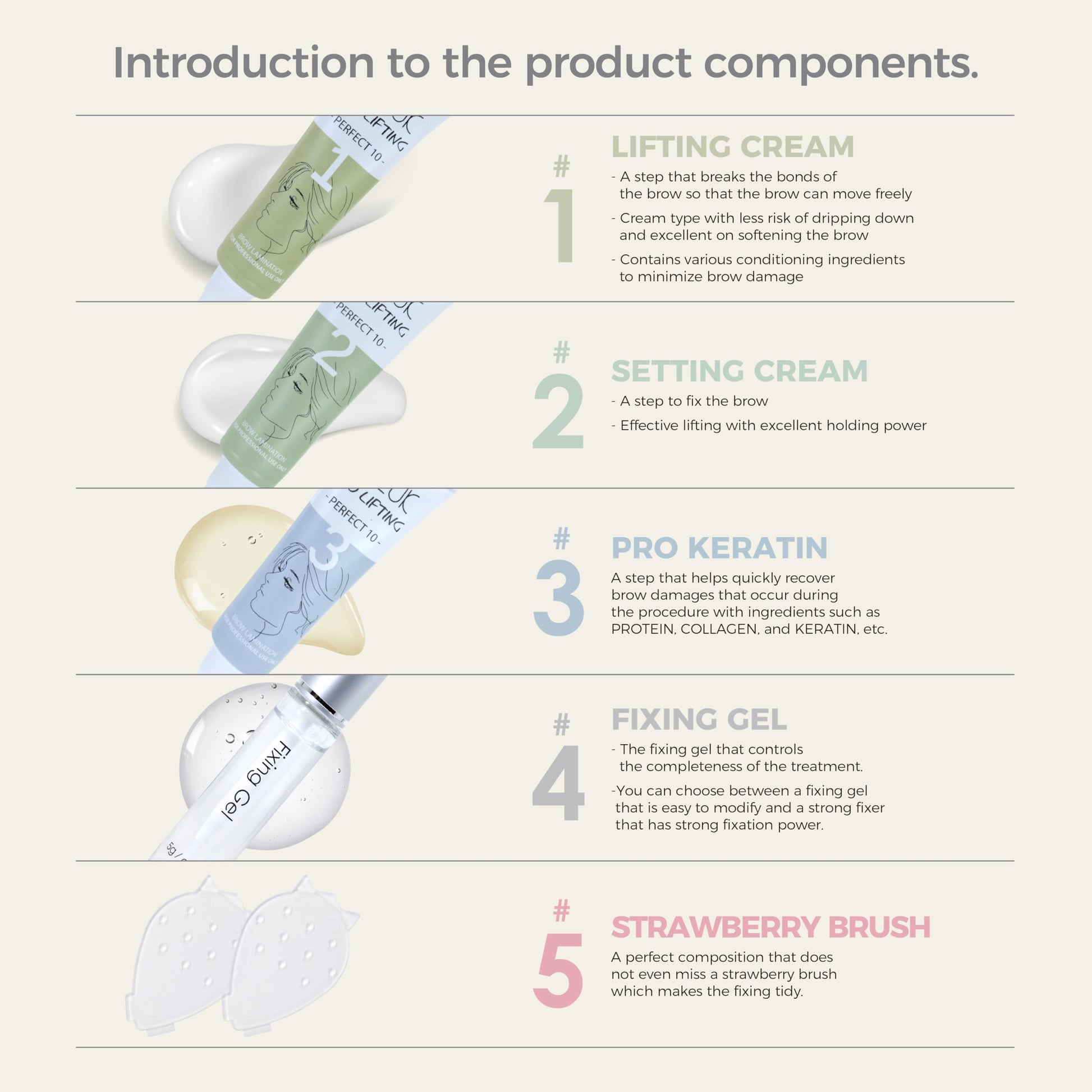 - The 3-step lamination composed of 1st, 2nd and 3rd PRO KERATIN to minimize damage to brows.