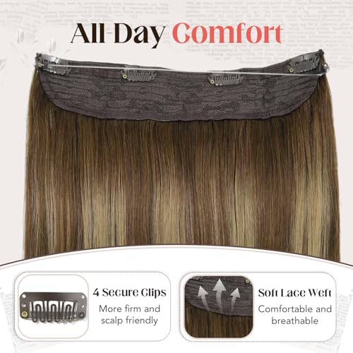 XDhair Wire Hair Extensions 14 Inch 70g Balayage Color Chocolate Brown to Caramel Blonde Invisible Wire Hair Extensions Real Human Hair Hairpiece(#4/27/4-14inch)