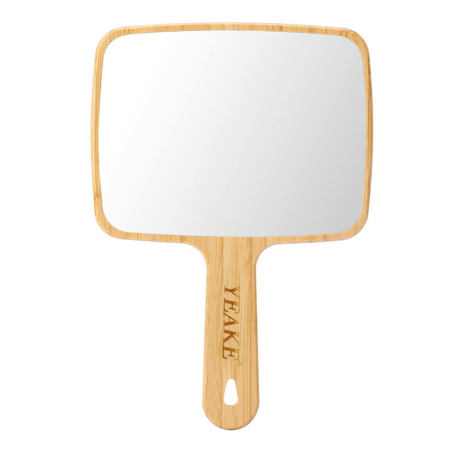 YEAKE Hand Mirror,Natural Bamboo Handheld Mirror with Handle, Single-Sided Portable Travel Vanity Mirror for Men & Women,6.9" W x 9.9" L