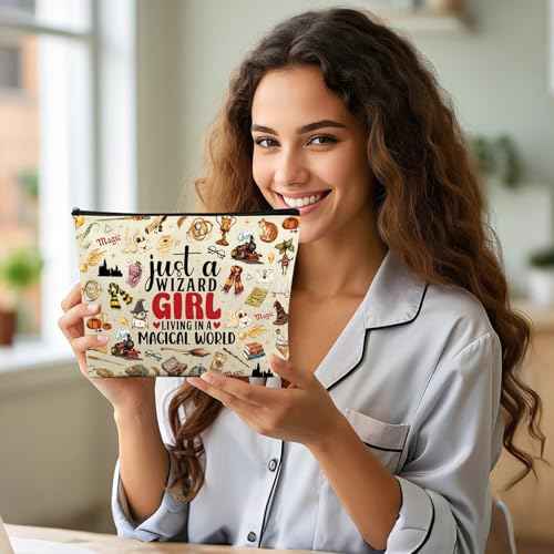 Magic Makeup Bag Gifts - Personalized Wizard Cosmetic Bags for Magical Books Lover Fans Canvas Toiletry Pouch for Women Girls Travel Beach Party Accessories Holiday Graduation Birthday Gift
