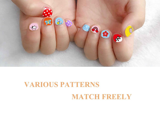 Kids Nail Stickers Full Nail Wraps Self Adhesive Nail Polish Strips for Kids Girls Nail Art Decoration Fun Including Flowers Butterflies Cows Recommend for Age 8 and Older (Pack of 10)
