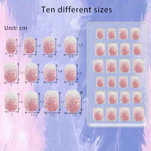 SIUSIO 120Pcs 5 Pack Press on Nails kids Children Acrylic Fake Nails Cute Pre-glue Full Cover Gradient Color Rainbow Short Stick On False Nail Art Kits Set for Kids Little Girls - Colorful Glitter