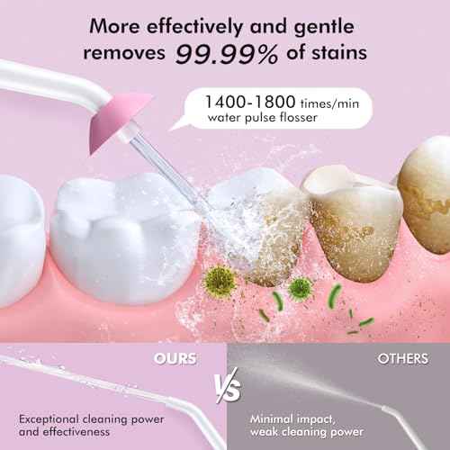 Demita Cordless Water Flosser for Teeth, 300ML 3 Modes 5 Jet Tips Portable Electric Flosser Pick for Adults, IPX7 Waterproof Oral Irrigator Cleaning Kit for, Gums, Braces Care(Pink) Mother's Day Gifts