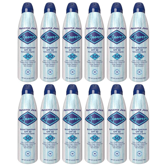Panama Jack Sport Sunscreen Spray - SPF 50, Broad Spectrum UVA/UVB Protection, PABA, Paraben, Gluten & Cruelty Free, Water Resistant (80 Minutes), 5.5 OZ (Pack of 2)