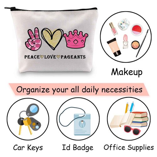 JXGZSO Pageant Queen Gift Beauty Pageant Gift Pageant Crown Cosmetic Bag Peace Love Pageant Makeup Pouch Pageant Zipper Bag