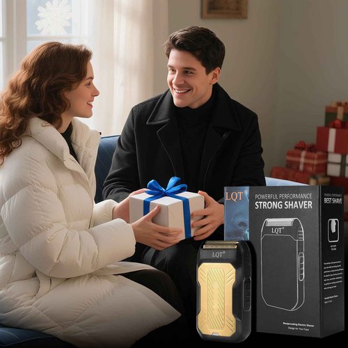 LQTⓇ Mini Foil Shaver, Portable Cordless Electric Shaver for Men, Equipped with a Set of Replacement Heads, USB-C Charging Cable, and Cleaning Brush, Suitable for Travel and Home use. (Golden)