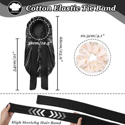 Silk Satin Hair Bonnet for Sleeping - Bonnets for Braids Black Women Curly Hair,Silk Hair Wrap Tie Band Long Big Silky Sleeping Cap with 2 Pcs Satin Scrunchies