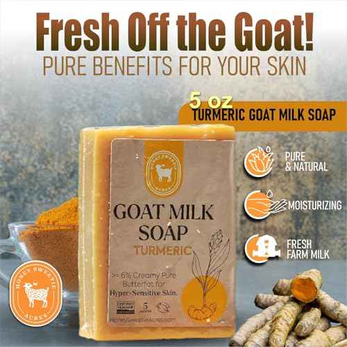 Honey Sweetie Acres Turmeric Goat Milk Soap - Handmade 5 oz Bar, Made with Natural Ingredients, Moisturizing & Gentle, Made in the USA