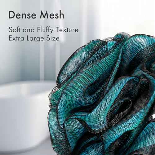 AmazerBath Charcoal Loofah Sponge, Large Shower Loofah 75g/PCS - Body Scrubber Loofa Set of 4 - Charcoal Blue, Green, Purple & Red, Bath Sponge for Men and Women