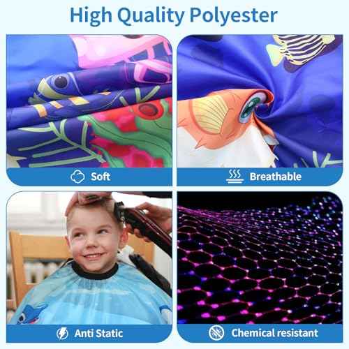 Kids Barber Cape with Neck Duster Brush, Professional Salon Hair Cutting Cape with Adjustable Snap Closure(Cartoon Sea Animals)