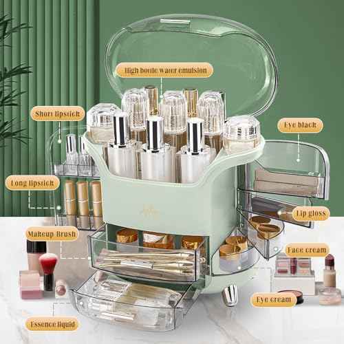 Makeup Organizer and Storage, Large Capacity Cosmetics Organizer with Waterproof and Dustproof, Makeup Organizer for Vanity with Lid and Drawer, Fit Bathroom,Bedroom, Desk,Countertops - Green