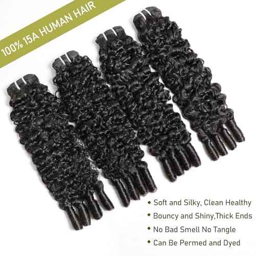 Lemoda Burmese Curly Human Hair Bundles 20 inch 100% Unprocessed 15A 3c4a Water Wave Bundles with Spiral Ends Double Weft Quick Weave Extensions Deep Wave Bundle Human Hair Natural Black Color