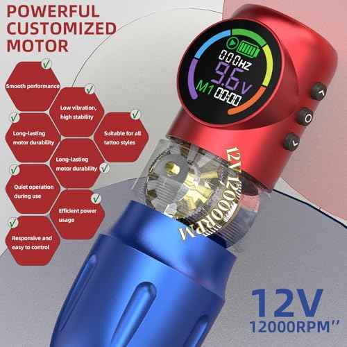 Wormhole Tattoo Gun Tattoo Kit Wireless Tattoo Machine ? Digital LED Display, 1500mAh Battery, 3 Modes (Normal/Jump-Start/Dot Work), Includes 20Pcs Tattoo Needles, Tattoo Pen for Lining & Shading
