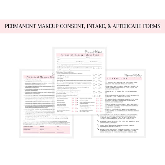 Permanent Makeup Intake, Consent, and Aftercare Form | 75 Pack | 8.5 x 11" A1 Forms | Clients Signature | for Providers Using Permanent Makeup Pigment for PMU | White and Pink Design