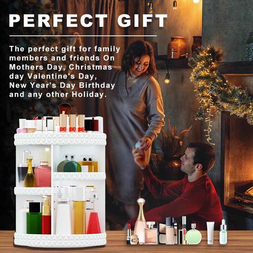 Famitree 360 Rotating Makeup Organizer, DIY Adjustable Makeup Carousel Spinning Holder Storage Rack, Large Capacity Vanity Organizer Skincare Organizers (White)