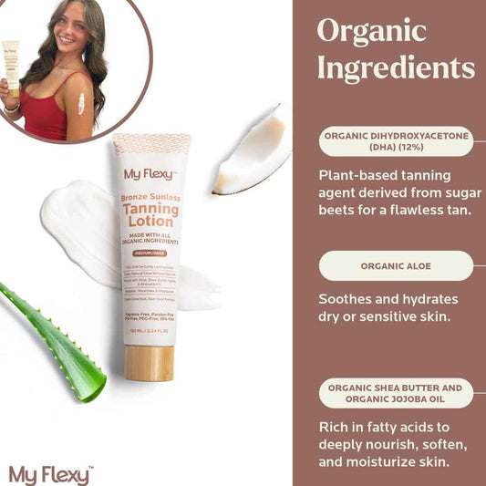Sunless Tanning Lotion–100% Organic-Medium/Dark Tan, Natural Self Tanner, Non Toxic Gradual Tanning Moisturizer, Streak-Free Self Tanning lotion for body, Sunless Tanner for Fake Tan for Women & Men