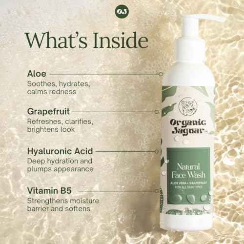 Organic Jaguar Aloe Vera and Grapefruit Face Wash for Skin Care, Makeup Remover, Hydrating Facial Cleanser with Hyaluronic Acid, Pore Cleaner, Cleansing Skincare for Oily to All Skin Types, 6 fl oz