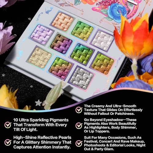 UCANBE Chameleon Multichrome Eyeshadow Palette, 10 Colors Shifting Chromatic Sparkling Metallic Eye Shadow, Multi-Use Blendable Holographic Glitter Shimmer Eye Makeup Palllet (Lunar Mirage)