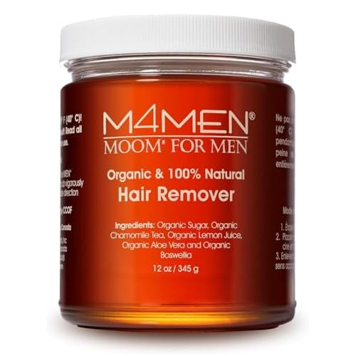 MOOM for Men Organic Hair Removal Kit, 12 oz Sugar Wax with 48 Reusable Fabric Strips, Natural Ingredients