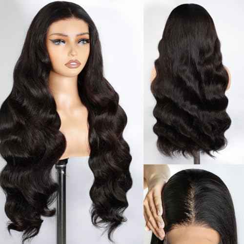 IWISH Body Wave Wig Human Hair 5x5 HD Lace Closure Glueless Wig Pre Plucked Human Hair Lace Front Wigs for Women Natural Black Color 28 Inch