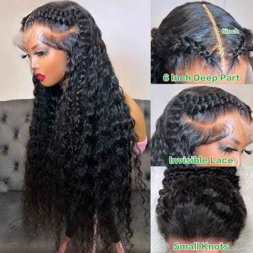 30 Inch Deep Wave Wig 13x6 Lace Frontal Deep Wave Wigs Human Hair 200% Density Pre Plucked Lace Front Wigs for Women 13x6 Lace Curly Human Hair Wig Deep Wave Glueless Wig