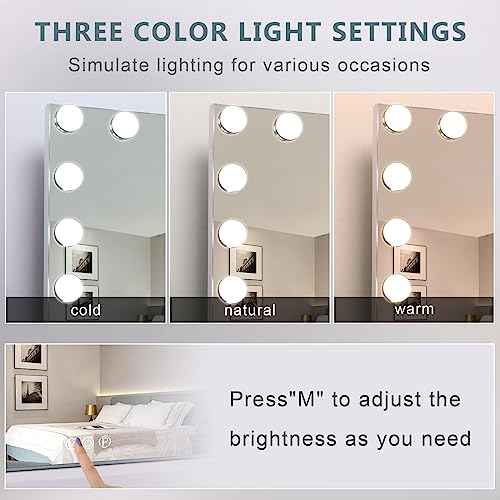 Fenair Large Vanity Makeup Mirror with Lights 32"X23" Lighted Hollywood Mirror with 18 Dimmable Bulbs, 3 Color Light Settings, USB Port, Bedroom Makeup Mirror for Tabletop