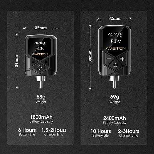 Tattoo Power Supply - Ambition 2Pcs Kuark Mini Wireless Portable RCA Tattoo 2400mAh & 1800mAh Lithium Battery Pack with LED Digital Display for Rotary Tattoo Machine