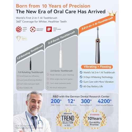 RANVOO AirJet PH3 [Vibrating & Flossing 2-in-1] Bubble Sonic Electric Toothbrush, Plaque Removal, White for Adult Protect Gum Orthodontic Teeth Clean Rechargeable Gift with 2 Soft Brush Heads Grey