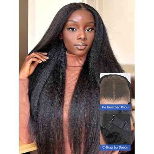 Kinky Straight Glueless Wigs Human Hair 5x7 Wear and Go Wigs Pre Plucked Pre Cut Lace Wig for Women invisible Lace Beginner Friendly 20Inches