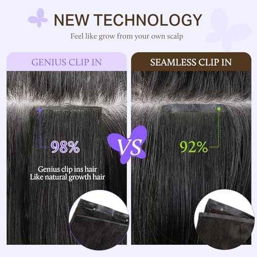 DOORES Genius Clip in Human Hair Extensions, Dark Brown 20 Inch 7pcs 120g, Invisi Edge Straight Hair Extensions with Skin Weft for Women