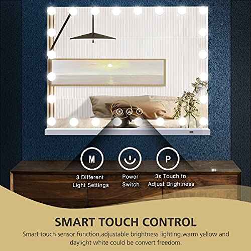 Hollywood Vanity Mirror with Lights 24 Bulbs 32 x 24 Large Hollywood Makeup Lighted Mirror for Wall Mounted or Tabletop LED Vanity Mirror 3 Color USB 10X Magnifier Hollywood Makeup Mirrors