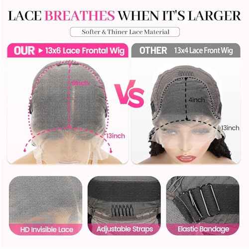 13x6 Lace Front Wigs Human Hair 200 Density Deep Wave HD Lace Front Wigs Human Hair Pre Plucked Glueless Wig 100% Virgin Human Hair Lace Front Wigs for Women Natural Color 28 Inch
