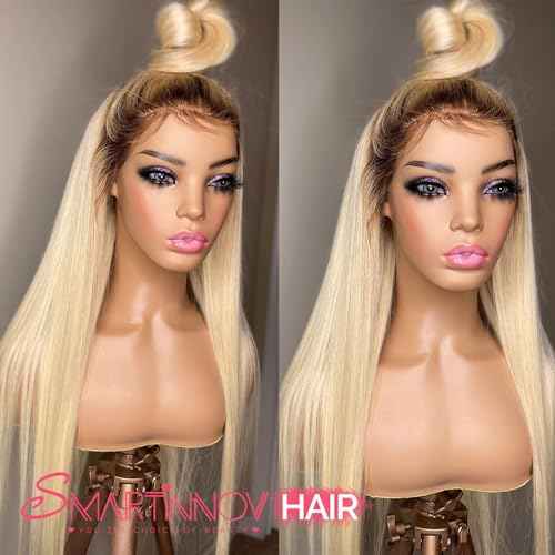 13x4 HD Lace Frontal Wigs 1B613 Ombre Blonde Human Hair Pre Plucked 150% Density 24 Inch Straight Bleached Knots with Dark Roots Transparent Invisible Glueless Lace Front Human Hair wigs for Women