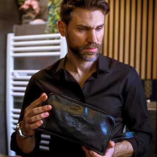 Time Resistance Leather Cosmetic Bag Toiletry Italian Classy Dopp Kit