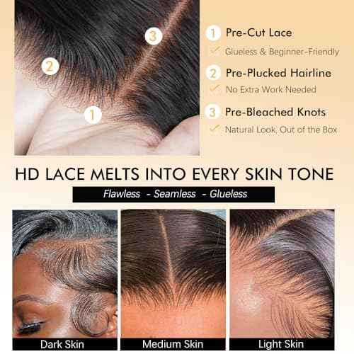 7x6 Deep Wave Glueless Wigs Human Hair Pre Plucked Pre Cut 250% Density Drawstring Wig Human Hair Wear and Go Glueless Wigs for Black Women Natural Color #1B 26 Inch