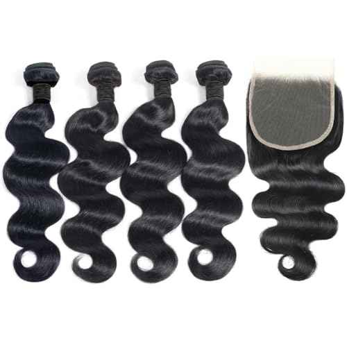 12A Human Hair Bundles with Closure 18 20 22 24+16 Inch Brazilian Body Wave 4 Bundles Human Hair with 5x5 HD Lace Closure Unprocessed Virgin Human Hair Natural Black