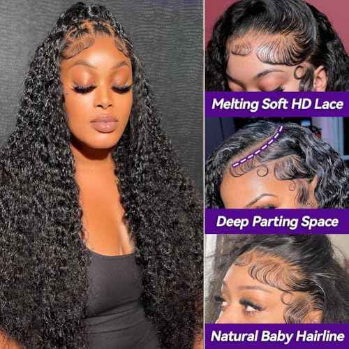 32 Inch 13x6 Deep Wave Lace Front Wigs Human Hair 200 Density HD Transparent Deep Curly Lace Front Wig Curly Human Hair Glueless Wig Wet and Wavy Pre Plucked Deep Wave Lace Frontal Wigs For Women
