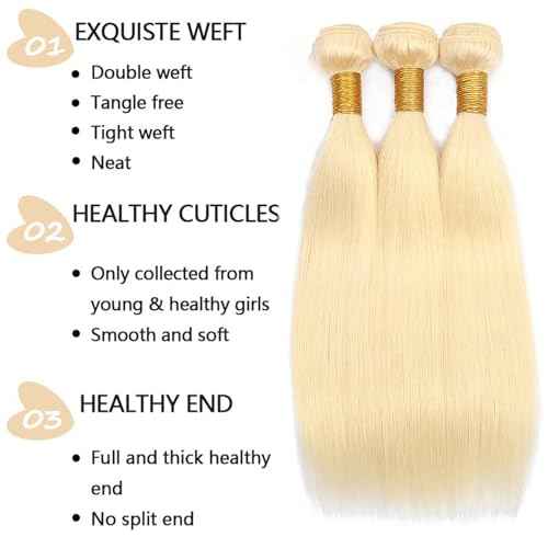 613 Straight Bundles Human Hair 26 28 30 Inch Blonde Bundles Human Hair 3 Bundle 12A Grade 100% Unprocessed Brazilian Virgin Raw Hair Weave Extensions for women