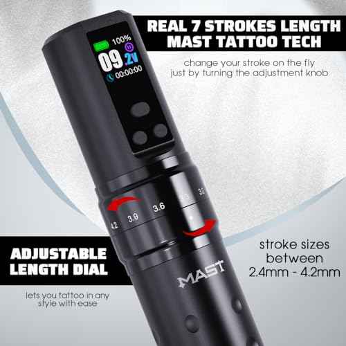 Mast Tattoo Fold2 Pro Tattoo Gun Kit Complete Tattoo Machine Kit 2000mAh Battery Supply Mcore-C1 Motor Real 7 Strokes Length