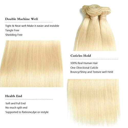 12A Human Hair Bundles 613 Blonde 18 20 22 Inch 3 Straight Bundles Human Hair Unprocessed Brazilian Remy Virgin Hair Extensions Raw Quick Weave Sew In Glossy Hair Bundles