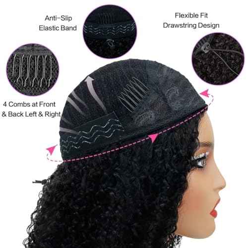 Half Wig Human Hair Kinky Curly 220% Density Glueless Wigs Human Hair 3 In 1 Seamless Flip Over Human Hair Curly Half Wigs for Women Drawstring Seamless (24 Inch)