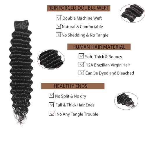 Human Braiding Hair 20 inch Deep Wave Bulk Human Hair for Braiding No Weft 100g (2Bundles-1Pack) 12A Brazilian Virgin Curly Human Hair For Boho Braids Wet and Wavy