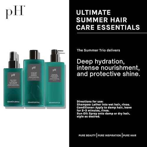pH PURE HAIR Laboratories Ultimate Summer Hair Care Essentials: Shampoo Conditioner & Anti-Frizz Oil for Sun, Salt & Chlorine, Hydrates & Repairs with Aloe Vera & Tulip Extract (8.45+8.45+3.38 fl oz)