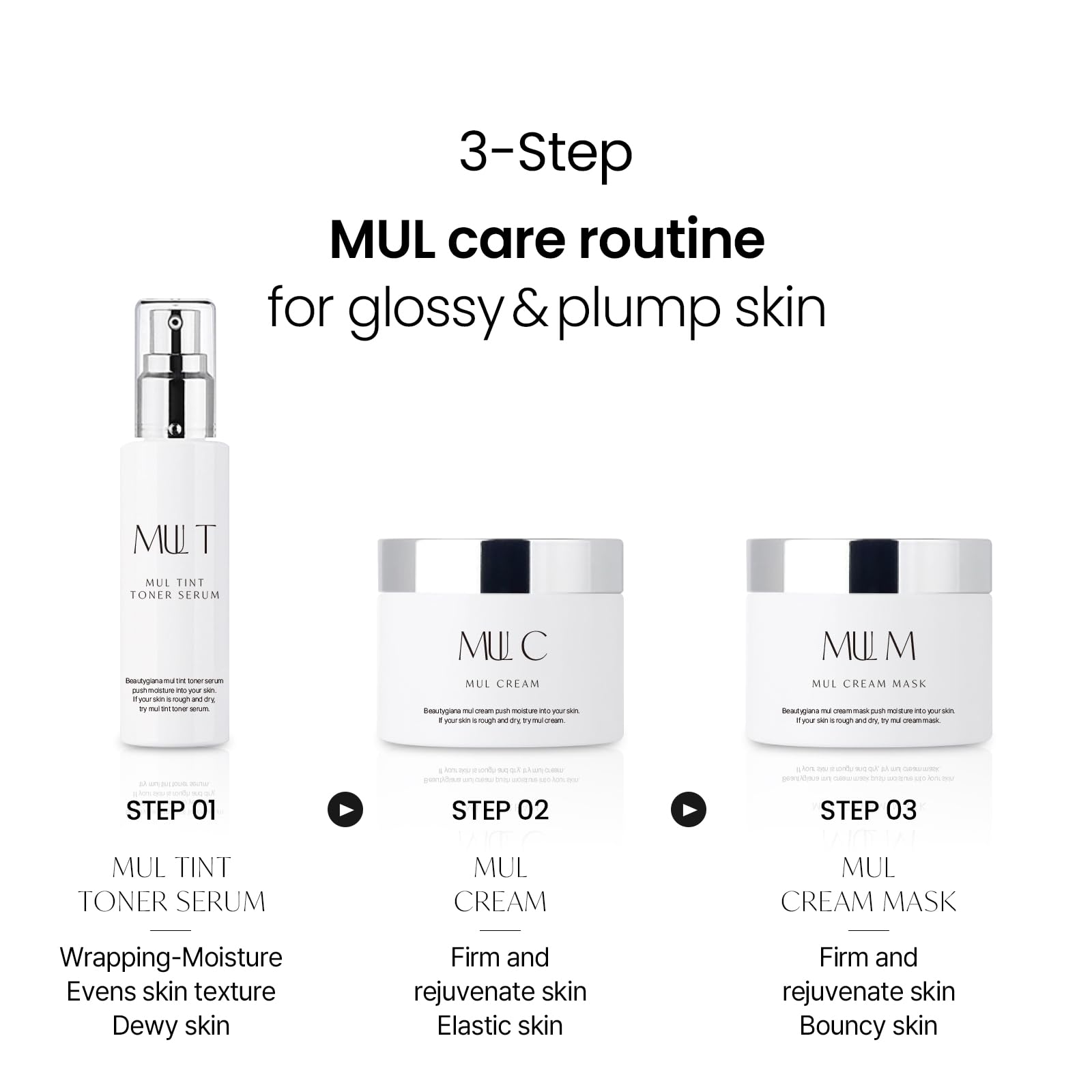 - Boost your results with the MUL Line! Maximize your results by using other MUL products (Mul Cream & Mul Cream Mask) and following 3-steps MUL care routine for glossy and bouncy skin