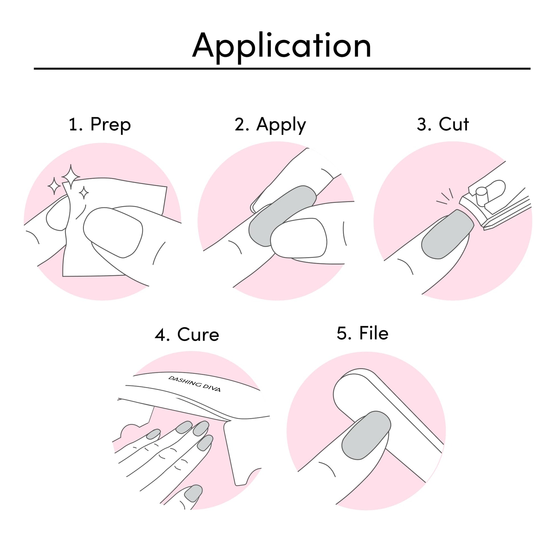 - HOW TO USE: Wash hands, shape nails with file, push back cuticle, clean nails from oils with included prep pad, select size of your strip, press on to nail, trim strip flush to your nails, cure under LED light for 45 seconds, file off excess
